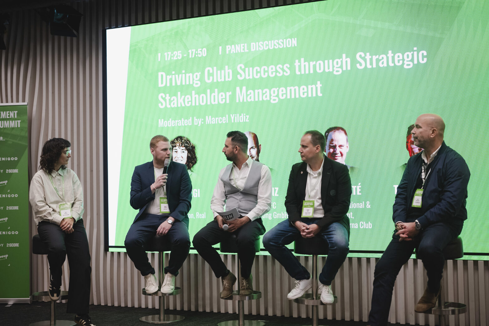 This is a panel discussion with Ane Arregi (International Communication, Real Sociedad), Dirk Schlünz (Managing Director, FC Nürnberg Marketing GmbH), Bálint Máté (Head of International & CSR Department, Ferencvárosi Torna Club) and Tomaž Lesjak (Head of Commercial, NK Celje) moderated by Marcel Yildiz held at the FBIN Management Excellence Summit presented by Opta by Stats Perform in Salzburg.