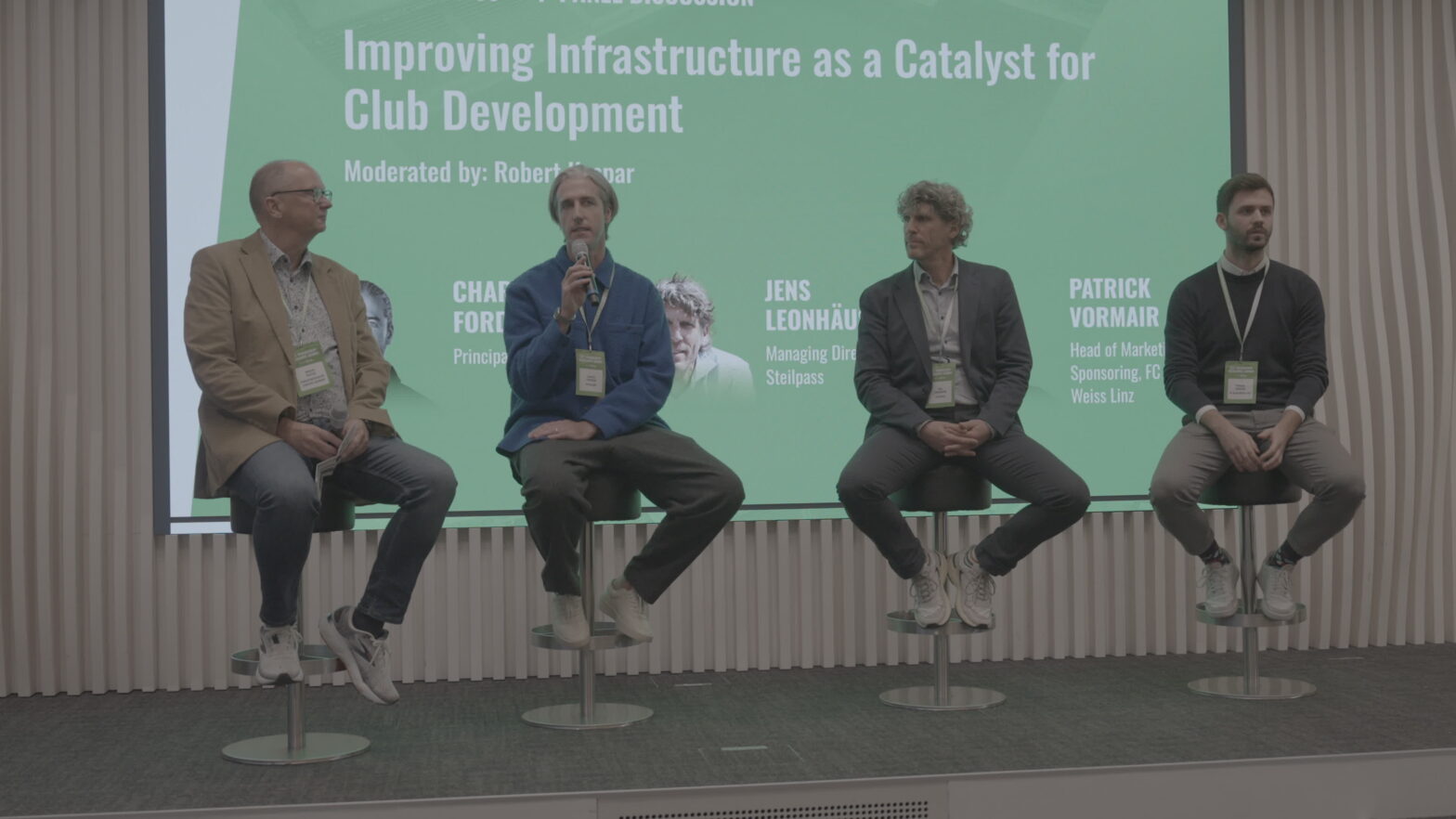 This is a panel discussion with Charlie Fordham (Principal, Populous), Jens Leonhäuser (Managing Director, Steilpass) and Patrick Vormair (Head of Marketing & Sponsoring, FC Blau Weiss Linz) moderated by Robert Kaspar held at the FBIN Management Excellence Summit presented by Opta by Stats Perform in Salzburg.